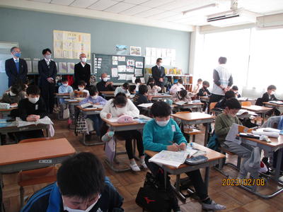 6年生が富岡中学校へ一日入学に行ってきました。富中藤井校長先生から「中学生は冒険の旅、あと3ヶ月で中学生になる心構えをもって」と、子供たちにエールをいただきました。そして中学校1年生の先輩からは、富岡中学校での学校生活を教わりました。校舎見学をすると真剣に授業に取り組む中学生の姿があり、子供たちは先輩の学ぶ姿も見学してきました。6年生の皆さん冒険の旅に出る準備を始めましょう。