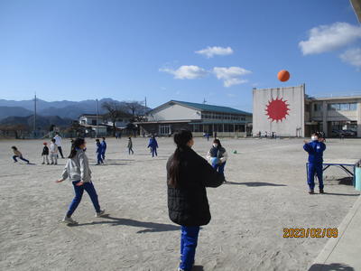 休み時間には、ボールを使ってみんなで元気に遊ぶ子供たちです。クラスみんなで、学年を越えて、グループで楽しい休み時間です。