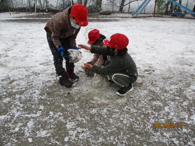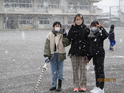 午前中から雪が降り出し、午後も雪が降り続きました。昼休みに子供たちは大喜びで雪で遊びました。