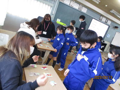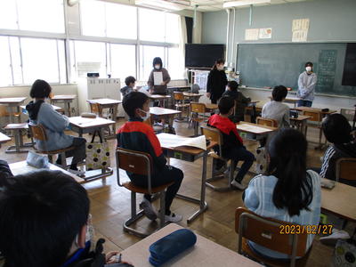 4月に西小学校の1年生に入学する子供たちが、元気よく一日入学を体験しました。5年生の子供たちが、西小の紹介、絵を描くお手伝い、一緒に遊ぶ、読み聞かせをする、おりがみをする等、およそ1時間の一日入学を進めます。5年生はこれまで子供たちを迎える準備をみんなで協力して進めてきました。保護者説明会の会場準備をしてくれたのも5年生です。感想を聞いてみると「楽しかった!かわいかった!」と満足のいく一日入学となったようです。5年生の最高学年への道が順調に始まりました。