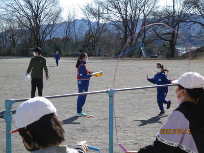 1月から始めた、なわとびカードの取組が今週の2月17日(金)までになります。今週がラストスパートということで、ぜひチャレンジしていないとび方や、今とべる記録を少しでものばせるように、なわとびをやってみてください!と、体育委員の子供たちから全校児童に呼びかけがありました。体育委員会の子供たちが20分休みに赤色のゼッケンを着て外で待っています。記録が伸びた人には体育委員会からプレゼントがあるようです。