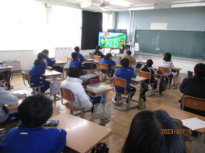 もうすぐ卒業の6年生へ、1・2・3・4・5年生からメッセージ動画が届けられました。一緒に遊んでくれてありがとう、縦割り班で遊びを考えてくれてありがとう、ドッジボールで手加減してくれてありがとう、運動会の準備や片付けをしてくれてありがとう、登校中に車が来ることを教えてくれてありがとう、並んでと声を掛けてくれてありがとう、あいさつ運動で手本を見せてくれてありがとう、委員会で学校の仕事をしてくれてありがとう、最上級生としてたくさんのことを教えてくれてありがとう・・・・たくさんの感謝のメッセージが伝えられました。あたたかい6年生へのメッセージでした。6年生が「めっちゃ感動しました。嬉しかったです。」とメッセージの感想を教えてくれました。