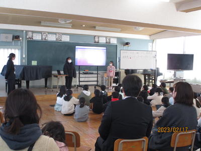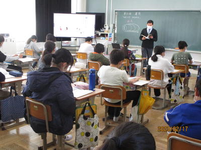 2月の児童集会は、「自分の成長を確かめよう」のテーマで行われました。各クラスから代表の児童が自分の成長したことについての作文をしっかりと発表しました。「違う学年の子と友達になれた」「自分の考えを発表できるようになった」「なわとびでできなかた跳び方ができるようになった」「振り返りをたくさん書けるようになった」「オーケストラを聴いて音楽に関心が広がった」「人と違う意見でも自信をもって話せるようになった」「友達の悪口やかげ口をクラスからなくすよう頑張った」など、様々な成長をしっかりと話してくれました。オンラインで各クラスをつないで発表しました。代表児童が発表しているときには、クラスの子供たちも一緒に緊張し、協力し、クラスの一体感を感じる発表となりました。児童会の皆さんありがとうございました。
