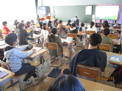 富岡保健福祉事務所の齋藤さんを講師に迎え、6年生が喫煙防止教室を行いました。タバコは毒の缶詰だと教えていただき、注意喚起を施された外国のタバコも紹介してもらいました。子供たちは正しい知識をもち、自分自身で判断する力と断る勇気で、自分の健康は自分で守ることを学びました。