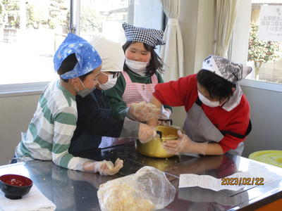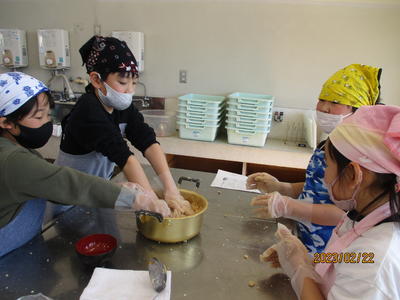 3年生が吉田さんを講師に、みそ作りを体験しました。ボランティアの高校生も小学生の時みそを作ったことをしっかりと覚えていました。3年生の作ったみそは、この後吉田さんのお家で熟成され、子供たちが5年生になた時に調理実習で使う予定です。大豆や地域の名人をテーマに総合的な学習の時間を進めていた3年生にとって、最適な体験活動となりました。