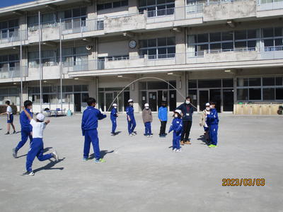 雲一つなく晴れ渡り、暖かい日になりました。体育集会を行い、長縄とびをしました。