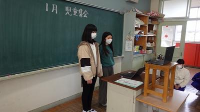 昼の活動の時間に児童集会が行われました。今回の児童集会は、リモートで行い、各委員会から3学期の取組について、話がありました。