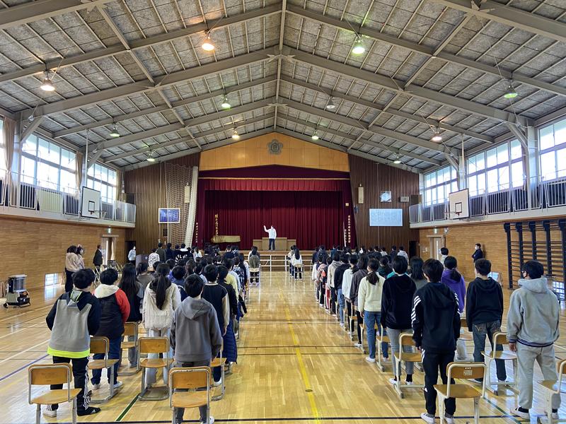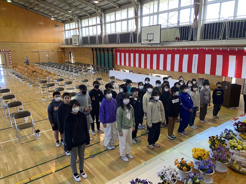 その後、離任式が行われ、お世話になった先生方に感謝の気持ちを込めて花束を贈呈しました。新天地でのご活躍を期待しています。