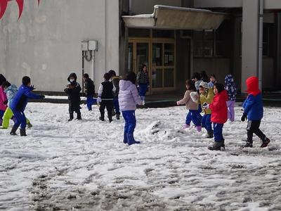 校庭は、一面の銀世界、子どもたちは元気いっぱい雪遊びを楽しみました。