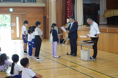10月15日(火) 活動の時間を利用して「表彰集会」が開かれました。多くの児童が表彰されました。課外活動での表彰や自由研究、陸上記録会等の表彰も行いました。陸上記録会では県大会に甘楽富岡地区代表として6名の児童が選出されました。
