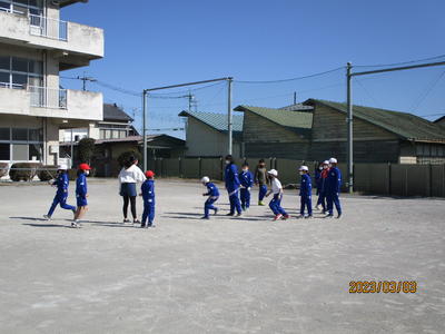 雲一つなく晴れ渡り、暖かい日になりました。体育集会を行い、長縄とびをしました。