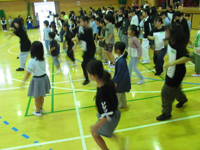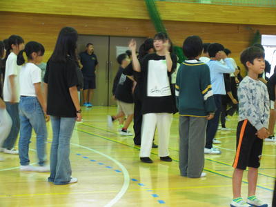 1年生のように今年が初めてとなる児童もいますが、縦割り班ごとに隊形を組むので、上級生の動きを見習いながら踊ることができます。