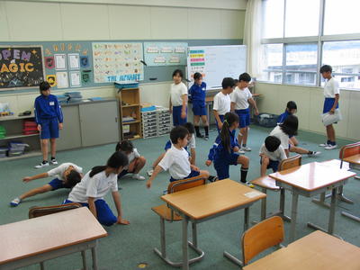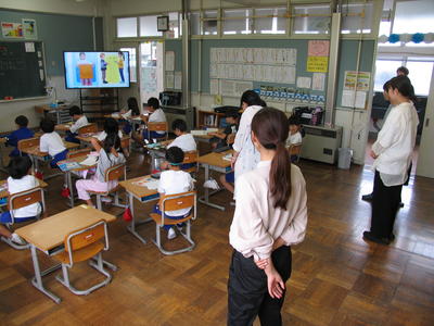 1年生の学級では、半年前までお世話になっていた方々の出現に、はりきっている姿が見られました。