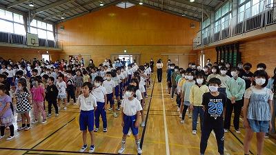今日は、5年生の合唱、6年生の合唱、全校合唱を行いました。
