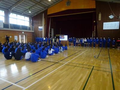 本日の全校集会では、校歌斉唱の後、校長より「あいさつの大切さ」について話がありました。
