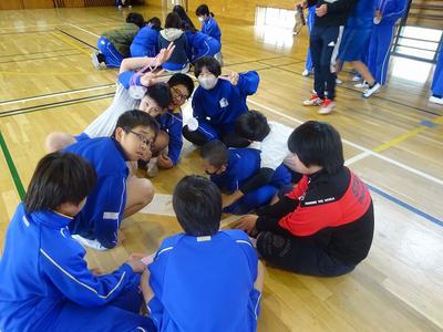 西小、富小、黒岩小の6年生による3校交流会が行われました。4月から富岡中学校で一緒になる3校による交流会です。