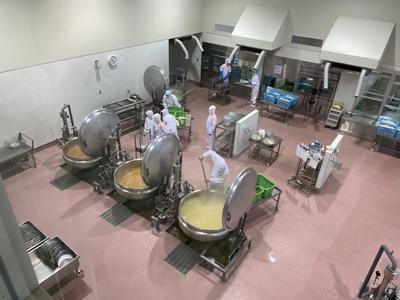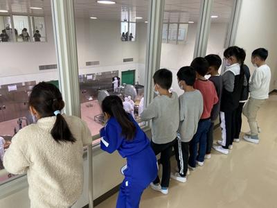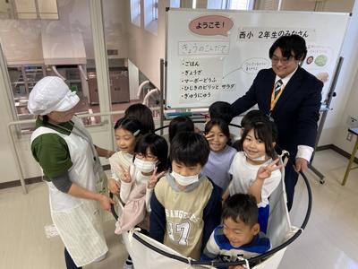 2年生は給食センターの見学に行きました。欠席0でした。実際に調理している行程を間近で見ることができ、できたてを食べることもできました。