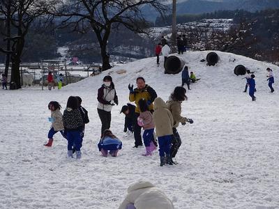 校庭は、一面の銀世界、子どもたちは元気いっぱい雪遊びを楽しみました。